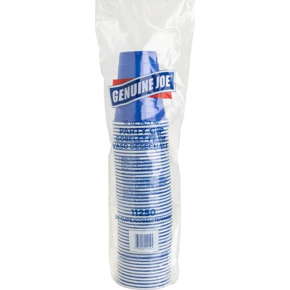 Plastic party cups are the perfect disposable choice for your next event. Durable plastic cup holds up to 16 oz. of a cold beverage to help reduce the time and effort of refills. Cups offer a wide mouth for quick, easy pouring; smooth, rolled comfort rim; and a double set of ridges around the middle of the colorful exterior for easy gripping.
